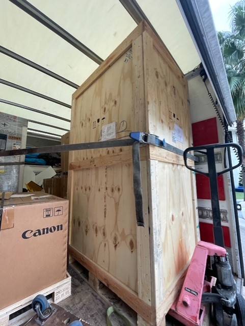 Récemment, nous avons effectué un déménagement pour le CNRS d’Antibes, impliquant une armoire d’un poids de 300 kg. Équipés de matériel spécialement adapté à ce type de manutention, nous avons transporté cette machine depuis la faculté de médecine à Nice jusqu’à l’hôpital Pasteur. Pendant ce transfert, nous avons pris soin de protéger l’équipement avec un emballage en bois, que nous avons récupéré après la livraison pour laisser un espace propre et dégagé, avec une machine prête à l’emploi.