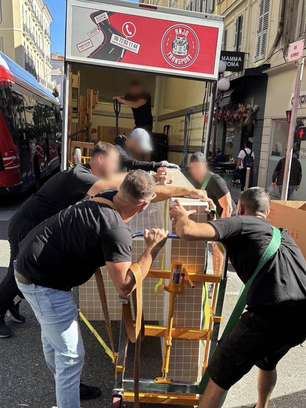 L’équipe d’Anjo Transport, spécialiste du transport et de la manutention de charges lourdes, fragiles et volumineuses, a récemment pris en charge le déménagement d’une table d’exposition de 300 kg à Nice, rue Gioffredo.